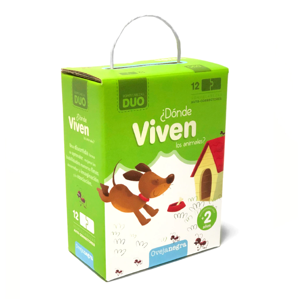 Incluye 12 rompecabezas (abeja, buho, camello, cerdo, elefante, gallina, gato, hormiga, oso, perro, pez, rana).